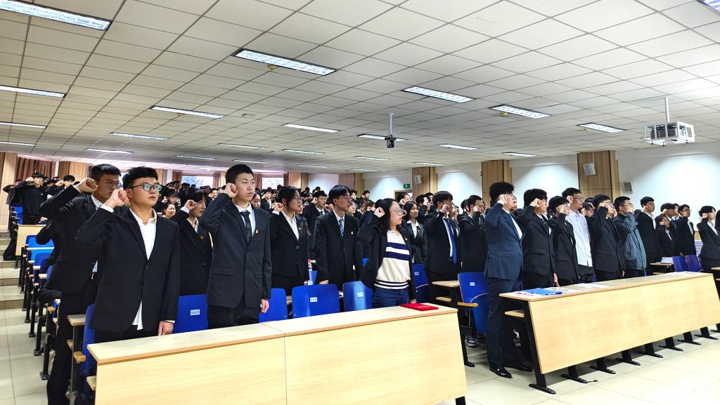 会上,2022年度优秀学生骨干代表高旭东回顾了过去一年的学生工作,同时对新任学生骨干提出了殷切期望。新一任学生会执行主席吴宜轩作为学员代表进行表态发言。全体学生骨干在分团委副书记宋安琪的带领下进行了庄严宣誓,他们信心满满,整装待发,满怀责任与担当朝着我院更美好的前景齐头并进。