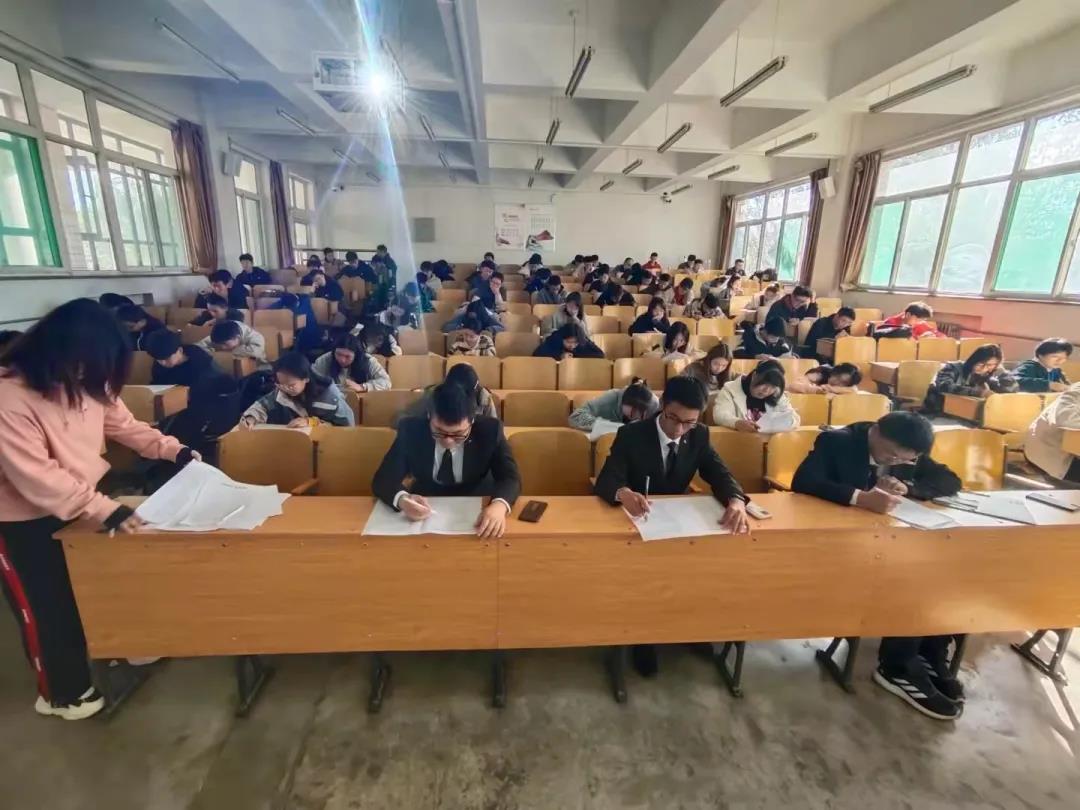 同学们于8点30到9点由心悦坊成员组织进行签到,有序落座后提前五分钟发卷,笔试现场紧张而井然有序,同学们信心满满、奋笔疾书。