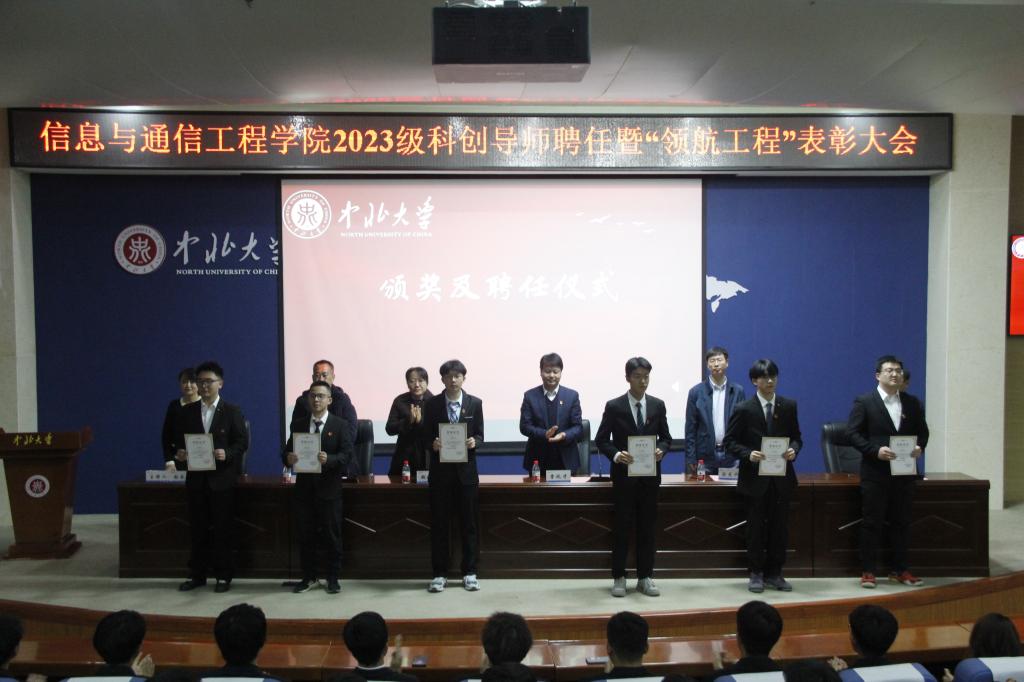 2023级新生科创导师聘任暨“领航工程”表彰大会在瑾瑜国际会议中心隆重举行。学院党委书记曹凤才、党委副书记兼副院长魏媛媛、电子与通信工程系主任陈友兴、电子信息工程专业负责人李凯、通信工程专业负责人王晨光出席会议,会议由学生科张永玲主持。