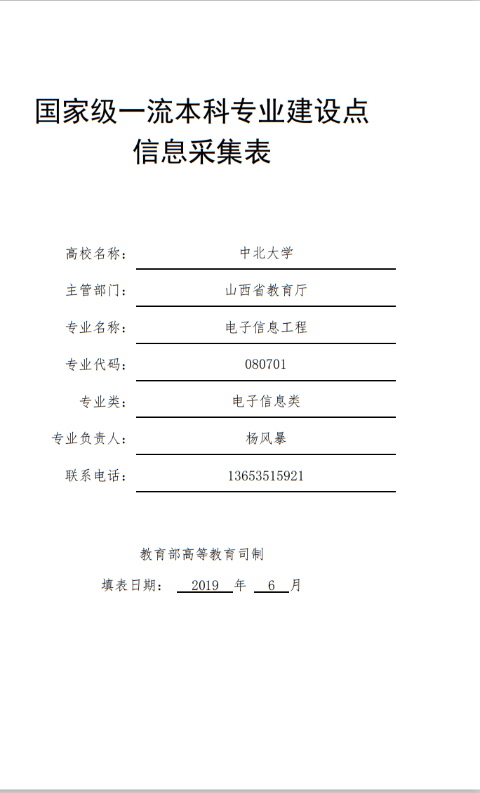 中北大学-电子信息工程专业-国家级一流本科专业建设点信息采集表