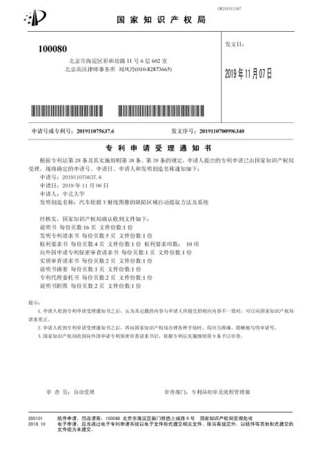 (10)汽车轮毂X射线图像的缺陷区域自动提取方法及系统,201911075637.6